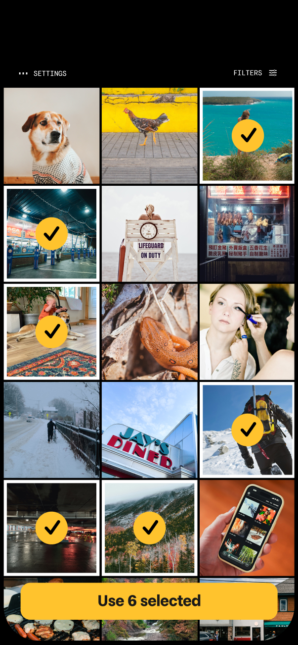 Batch edit up to six images at a time to apply the same style/layout/exif data. Doesn't matter if some are vertical and others are horizontal.