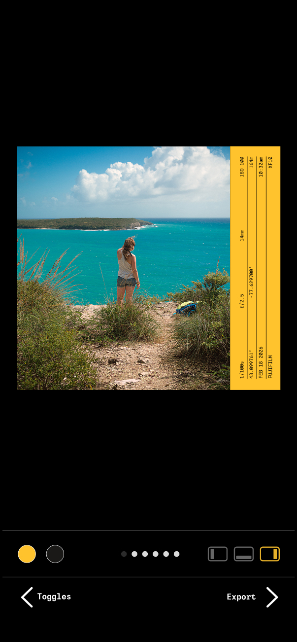 Adjust where the EXIF data will show up. You've got three options: left, bottom, right. From here just export and go!